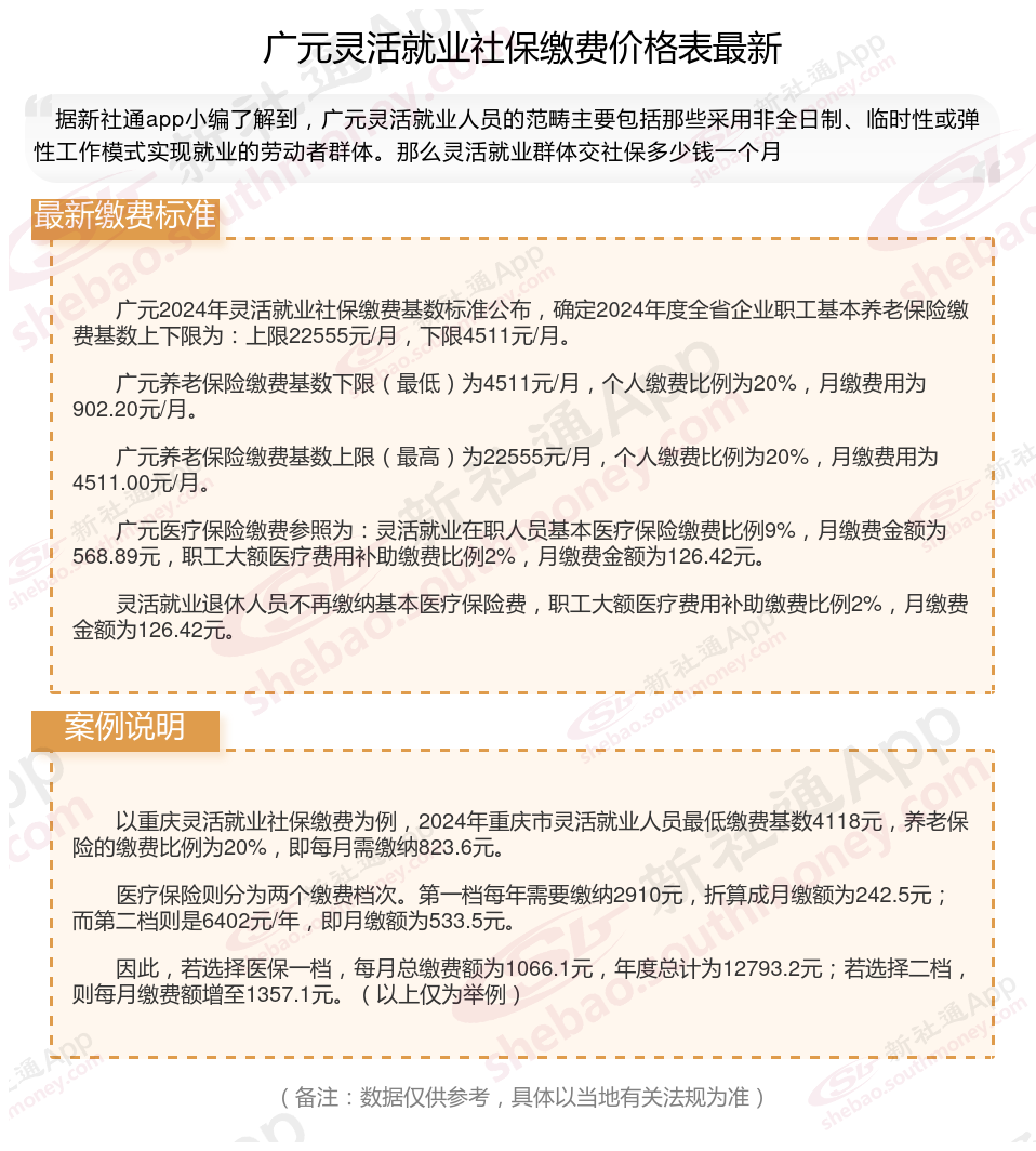 据新社通app数据显示,2024-2025年广元灵活就业人员养老保险的缴费标准: