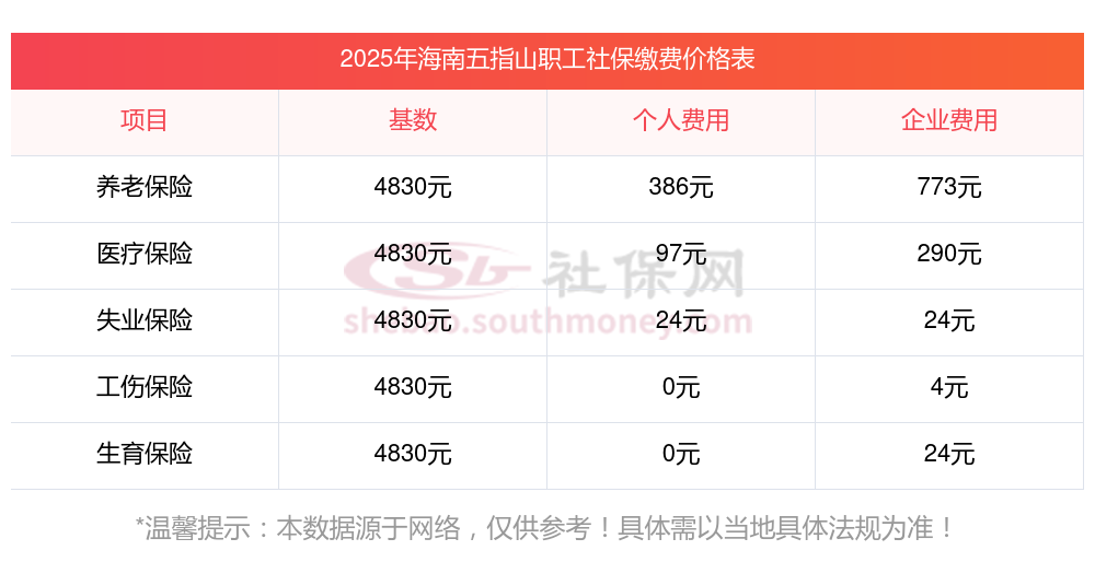 2025年海南五指山社保缴费价格,2025年海南五指山社保缴费多少钱?下表是2025年海南五指山社保费用明细参考,新社通app-社保缴费查询工具提供的最新数据如下: