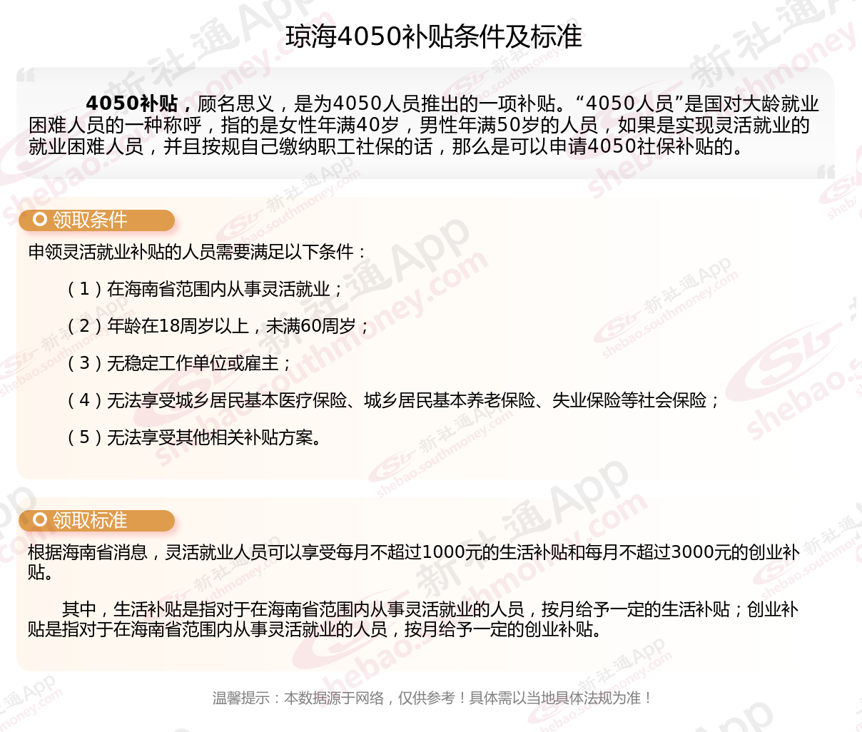以上就是琼海4050灵活就业社保补贴的相关内容,欢迎关注新社通/下载新社通app了解更多五险一金专业资讯。