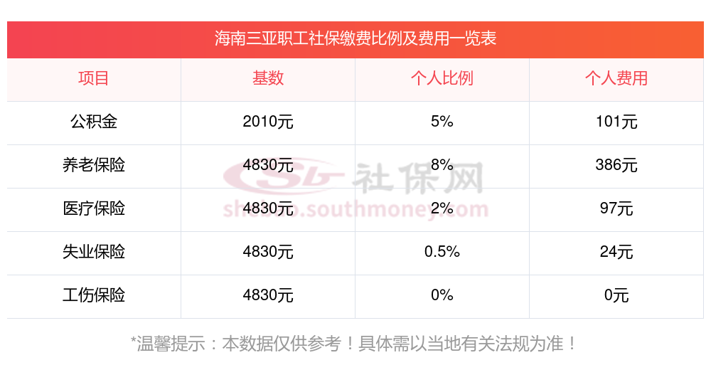 2025社保交多少钱?下表是2025年海南三亚社保费用明细参考,新社通app-社保缴费查询工具提供的最新数据如下: