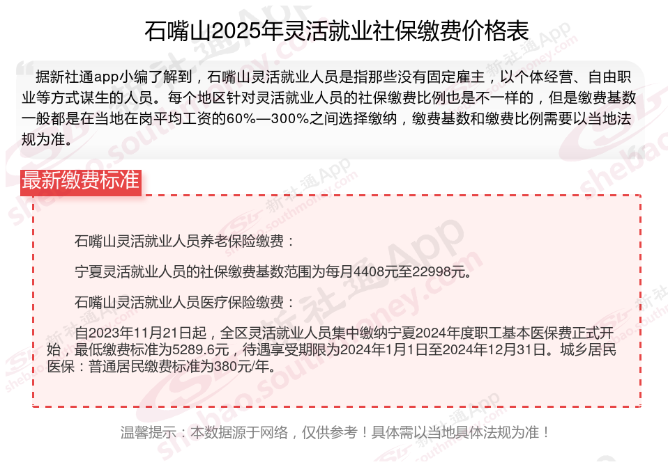 二、石嘴山2025年灵活就业社保缴费基数及比例最新消息
