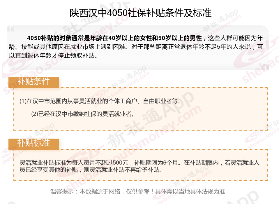 以上就是陕西汉中4050灵活就业社保补贴的相关内容,欢迎关注新社通/下载新社通APP了解更多五险一金专业资讯。