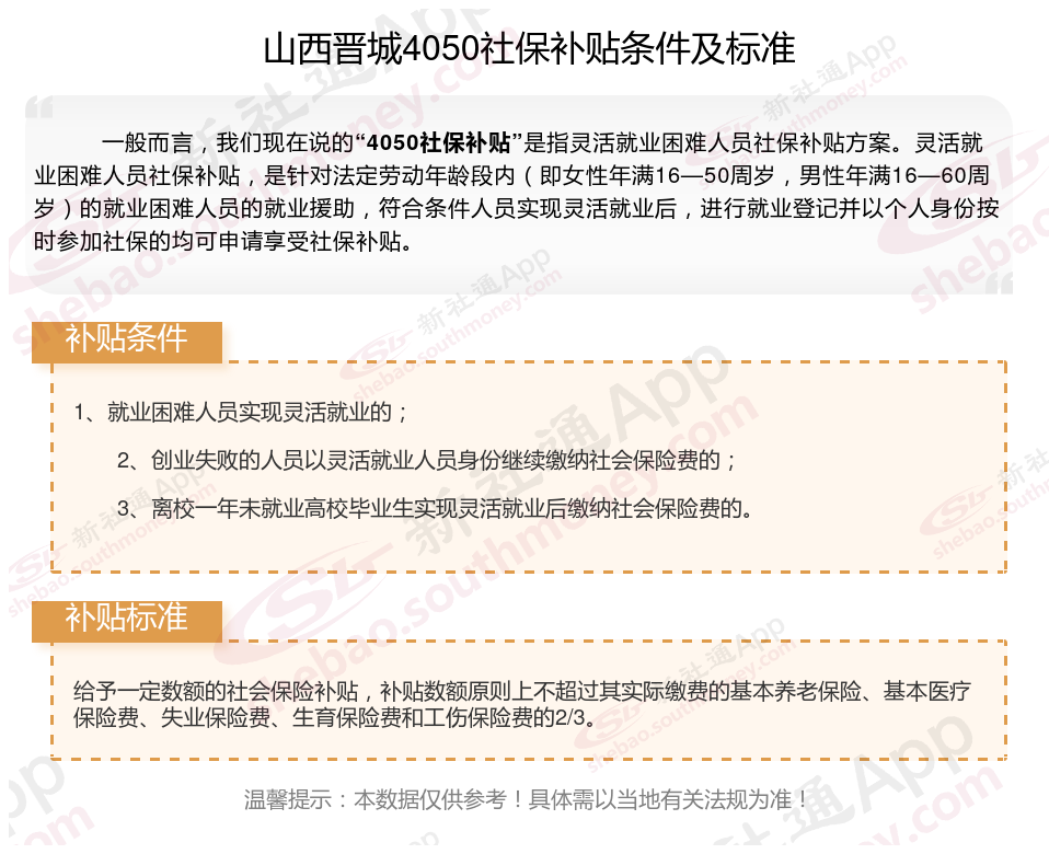 二、2025年山西晋城4050社保补贴标准(山西晋城4050灵活就业人员补贴标准是多少钱?山西晋城2025年4050补贴新规能领多少钱?)