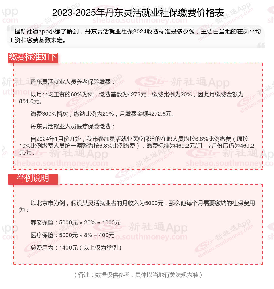据新社通app数据显示,2024-2025年丹东灵活就业人员养老保险的缴费标准: