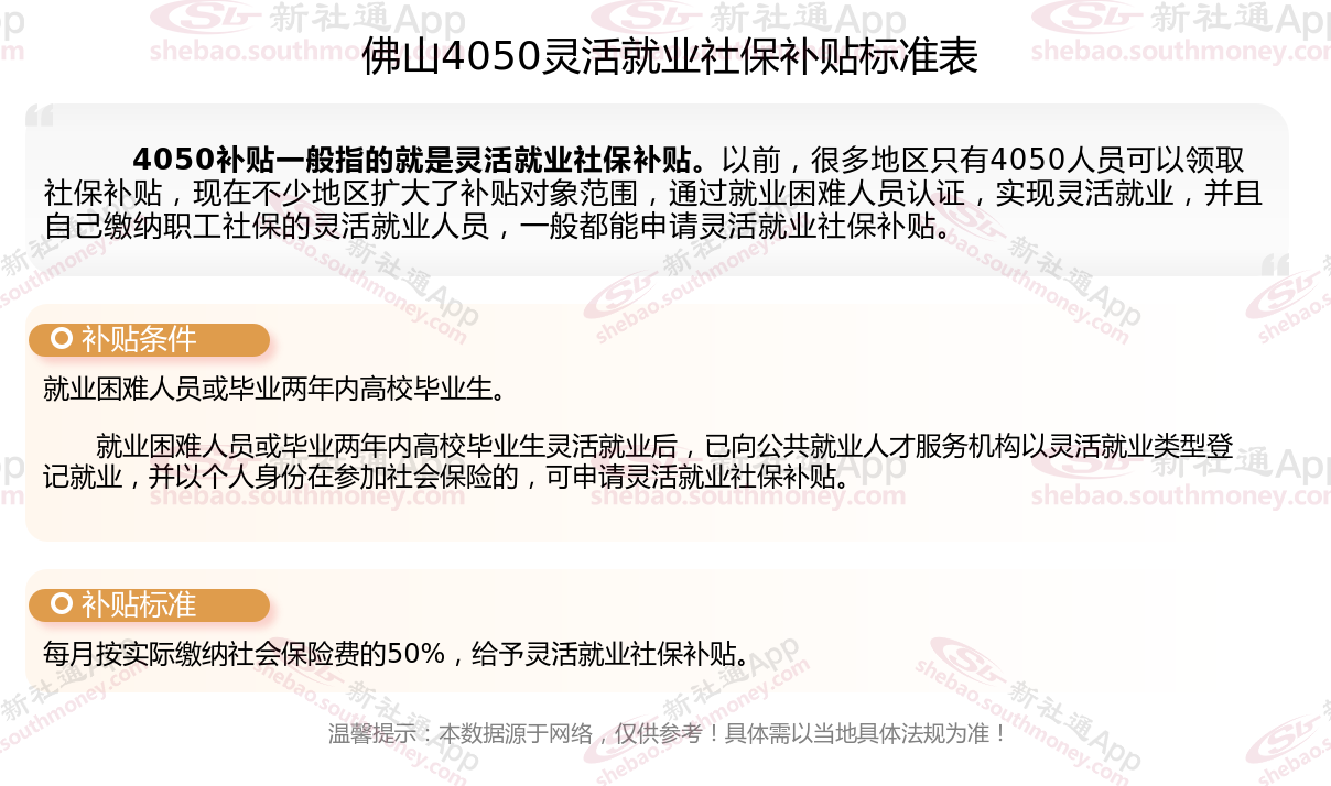 一、2025年佛山4050社保补贴标准及条件是多少?