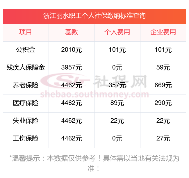 浙江社保多少钱一个月?下表是2024-2025年浙江丽水社保费用明细参考,新社通app-社保缴费查询工具提供的最新数据如下:
