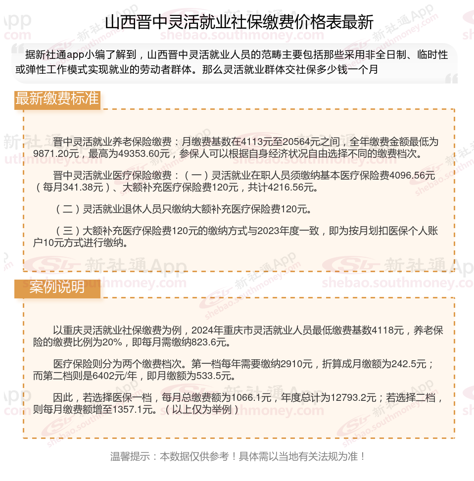 一、2025年山西晋中灵活就业社保缴费标准表 山西晋中灵活就业社保多少钱一个月?