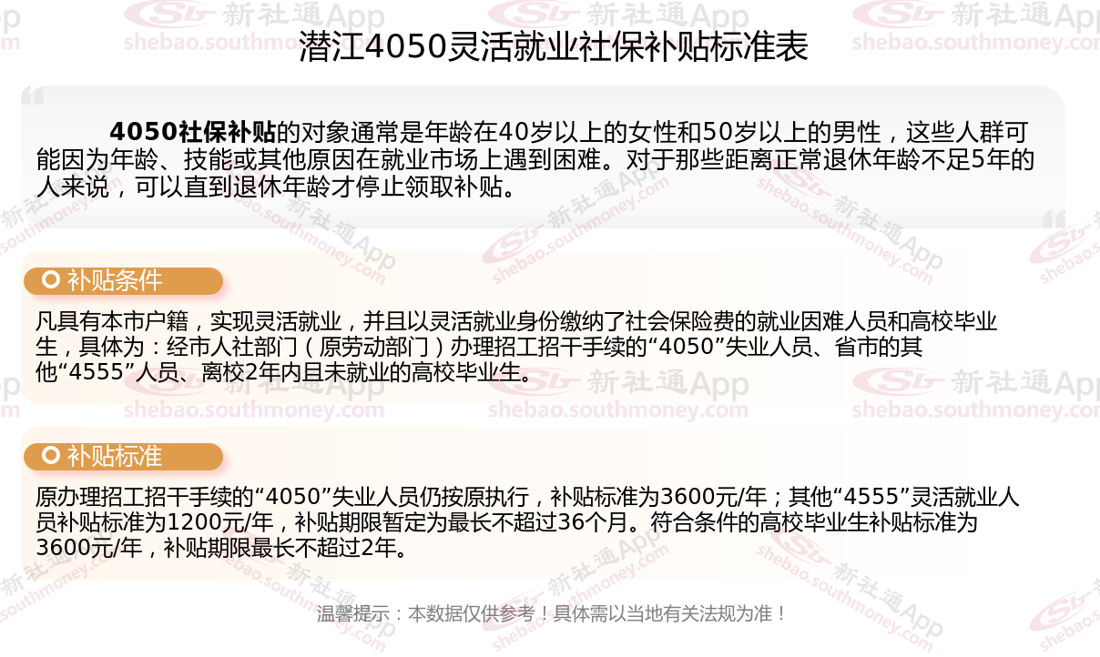 一、2025年潜江4050社保补贴标准是怎么样的?潜江4050一年可拿多少钱?