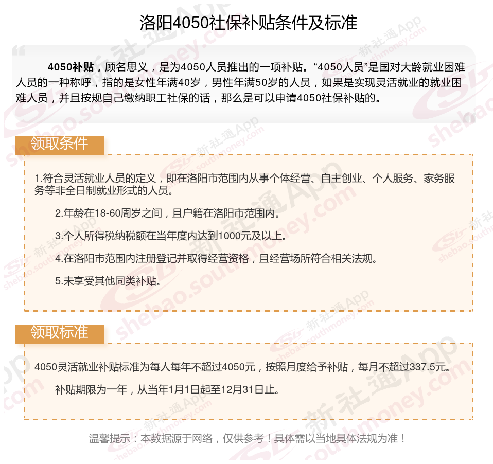 二、2025年洛阳4050社保补贴标准及条件是什么?