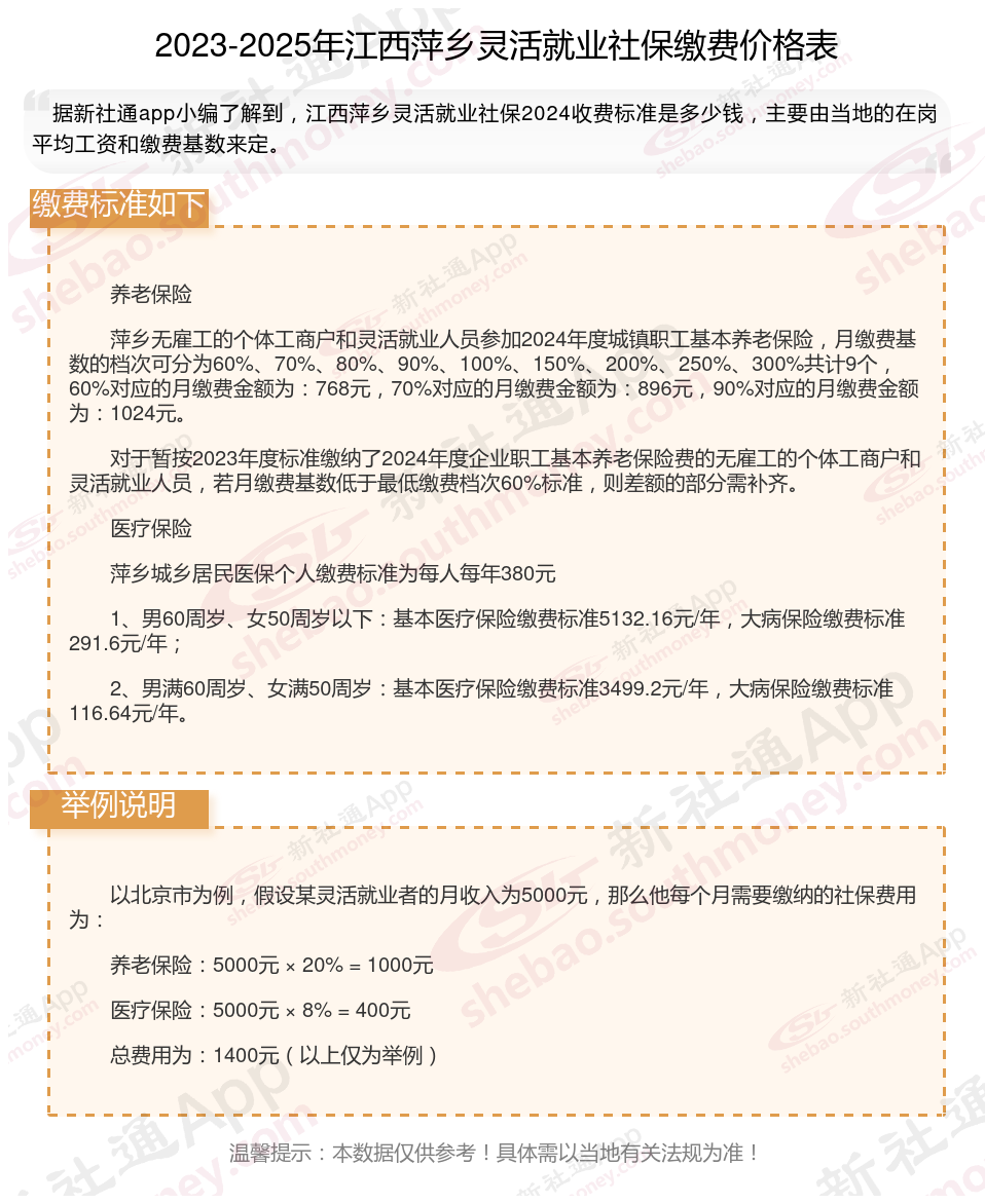 江西萍乡灵活就业人员基本养老保险缴费基数暂按不低于3839元;