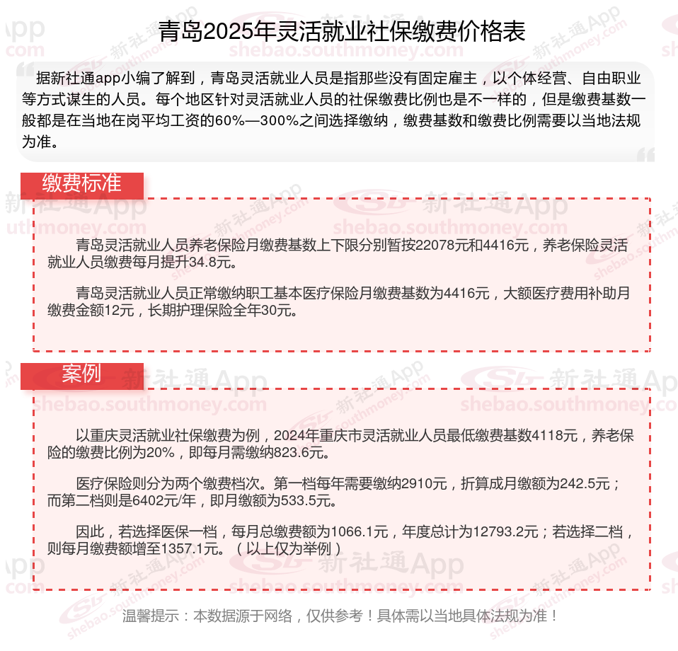一、2025年青岛灵活就业社保缴费标准表 青岛灵活就业社保多少钱一个月?