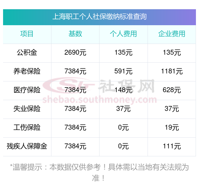 上海今年企业社会保险费缴费标准是多少?新社通app小编缴费查询工具提供的最新数据如下:
