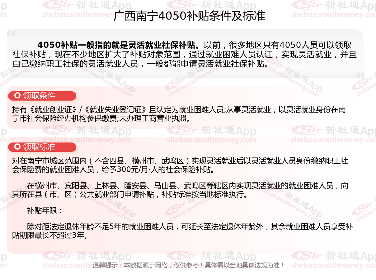 以上就是广西南宁4050灵活就业社保补贴的相关内容,欢迎关注新社通/下载新社通APP了解更多五险一金专业资讯。