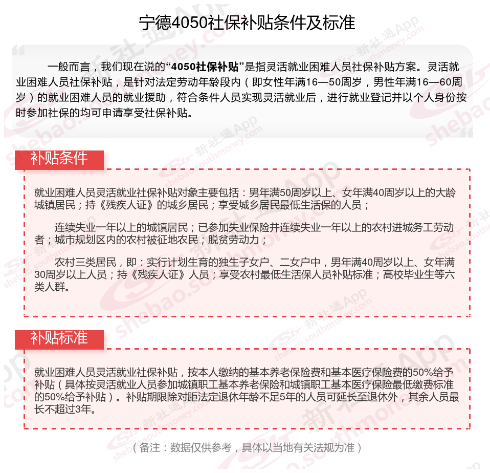 二、宁德4050社保补贴标准及条件2025年,最新如下