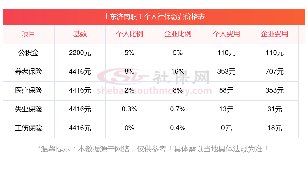 2025年山东济南社保缴费多少钱?下表是2024-2025年山东济南社保费用明细参考,新社通app-社保缴费查询工具提供的最新数据如下: