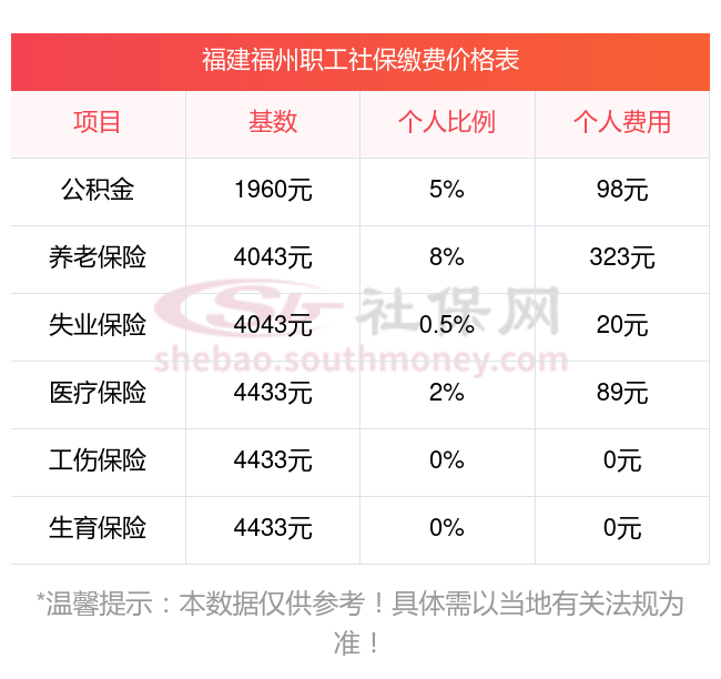 福建福州社保缴纳比例由企业和个人共同承担,具体比例如下: