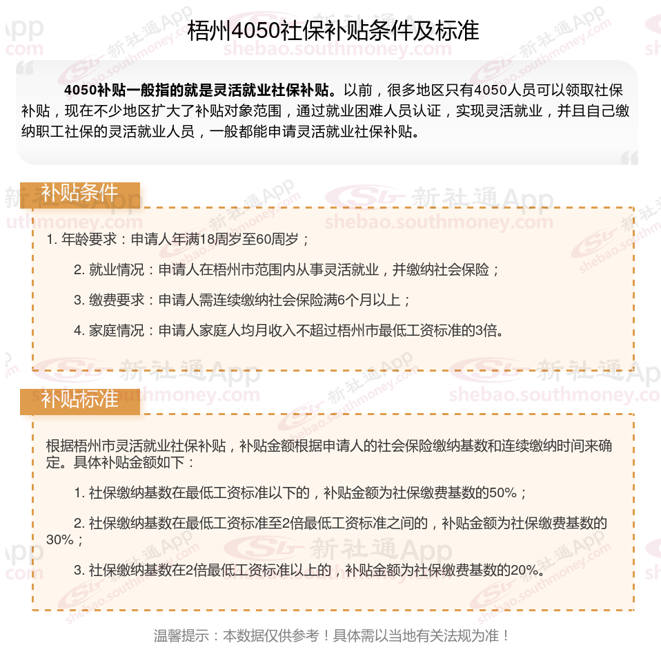 一、梧州灵活就业4050社保补贴标准和条件是什么?