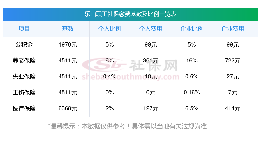 2025年乐山社保缴费多少钱?下表是2024-2025年乐山社保费用明细参考,新社通app-社保缴费查询工具提供的最新数据如下:
