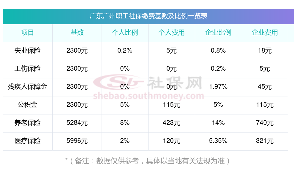 2025年社保多少钱一个月?下表是2024-2025年广东广州社保费用明细参考,新社通app-社保缴费查询工具提供的最新数据如下: