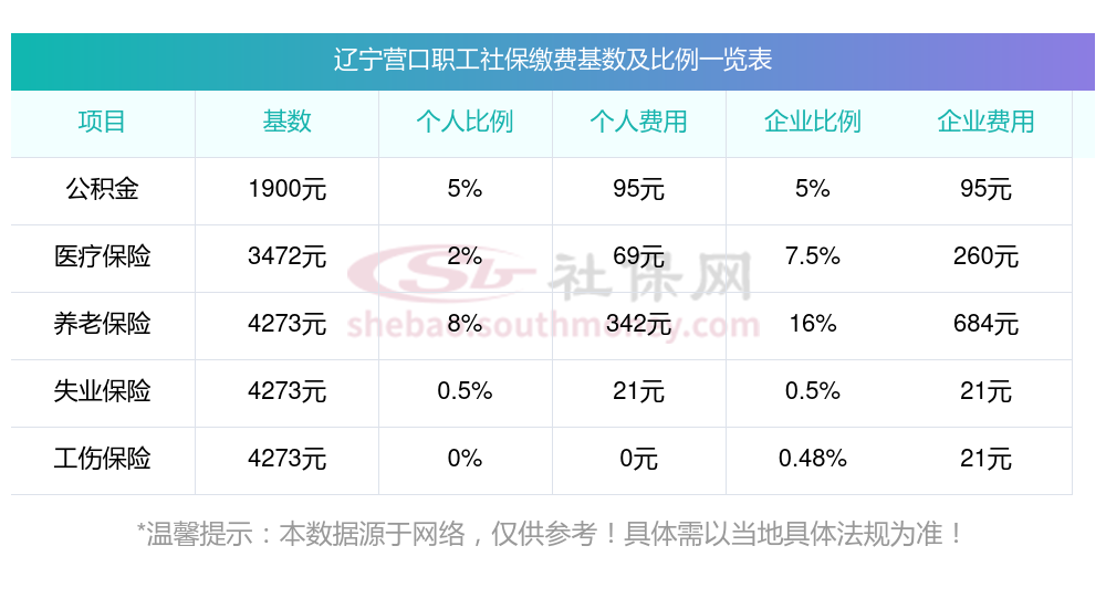辽宁营口社保多少钱一个月?下面和新社小编一起来看看辽宁营口最低标准社保费用明细参考,新社通app-社保缴费查询工具提供的最新数据如下: