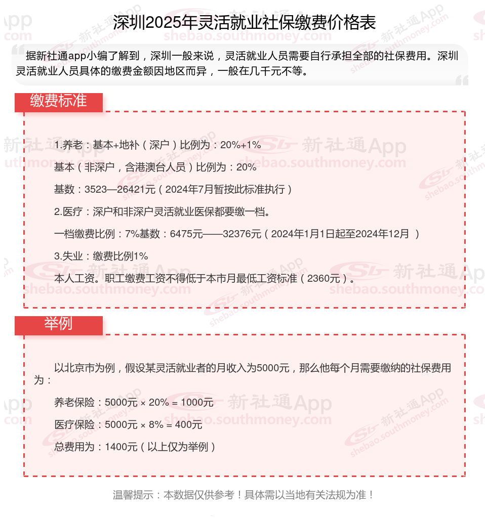 据新社通app数据显示,深圳灵活就业养老缴费基数明细如下: