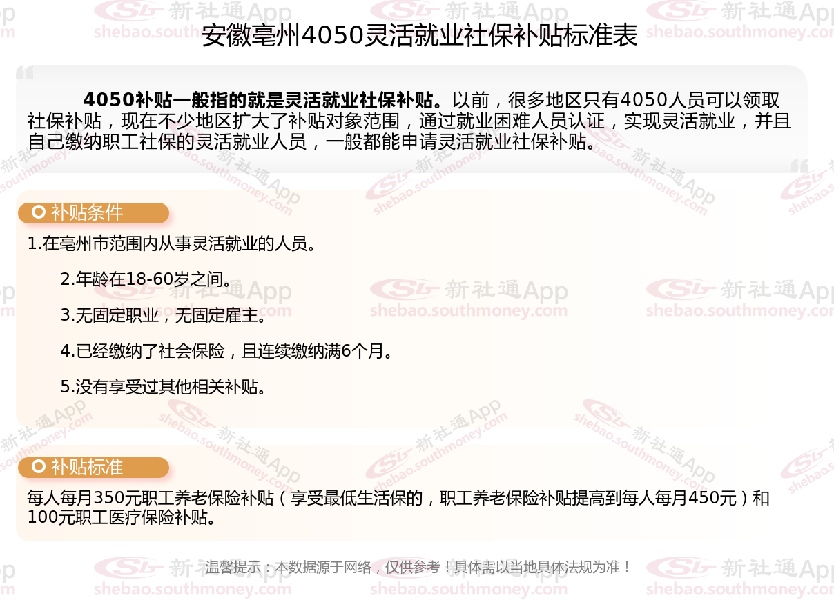 以上就是安徽亳州4050灵活就业社保补贴的相关内容,欢迎关注新社通/下载新社通APP了解更多五险一金专业资讯。