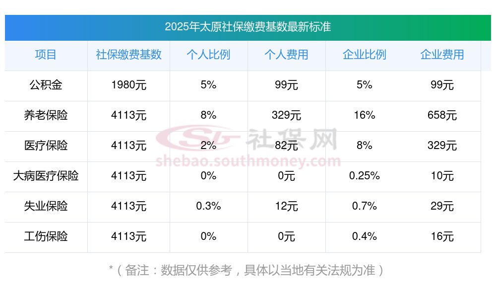 2025年太原社保缴费多少钱?下表是2023-2024年太原社保费用明细参考,如下: