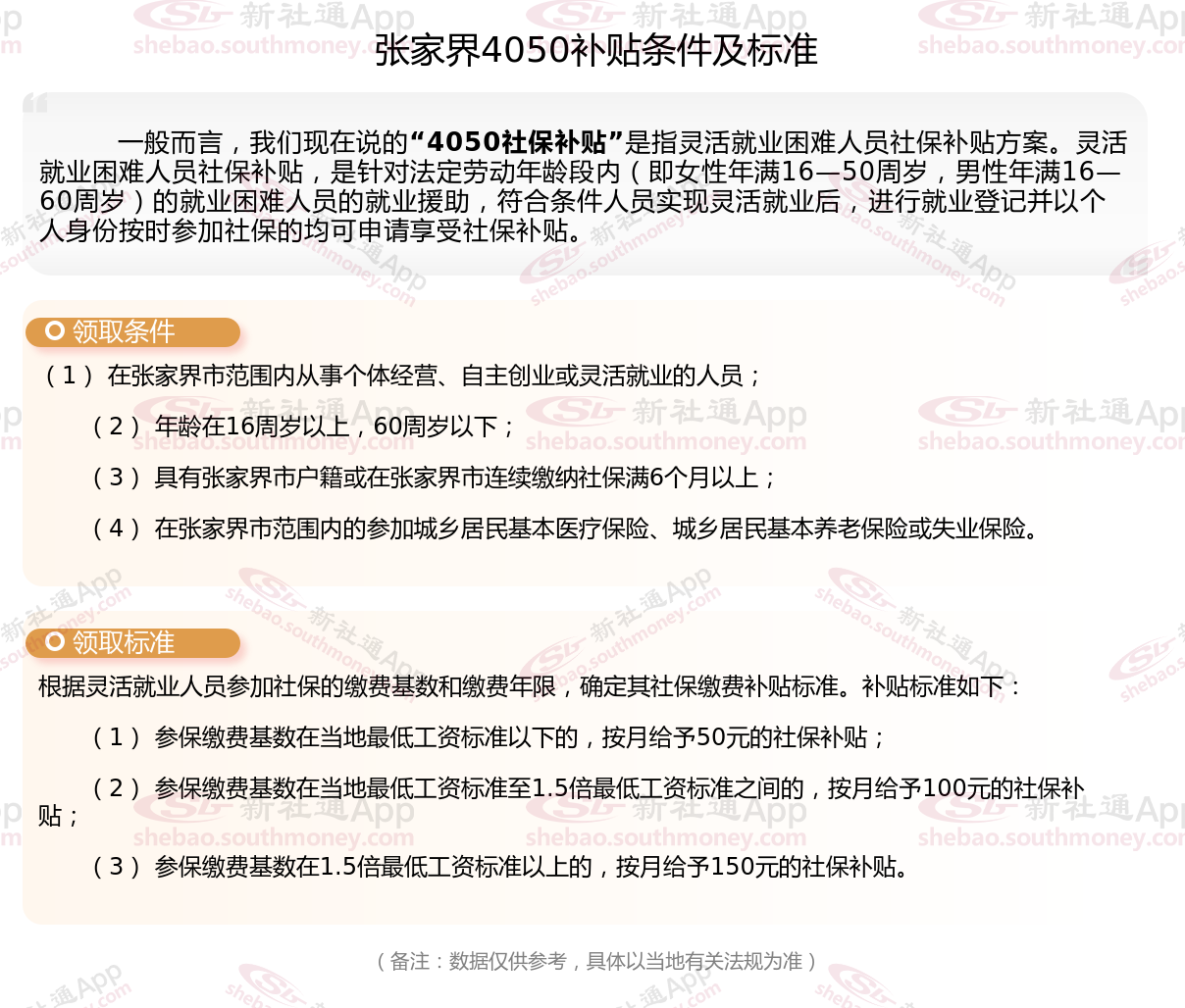 二、张家界4050社保补贴多少钱一个月?张家界4050社保补贴2025年最新标准是多少?