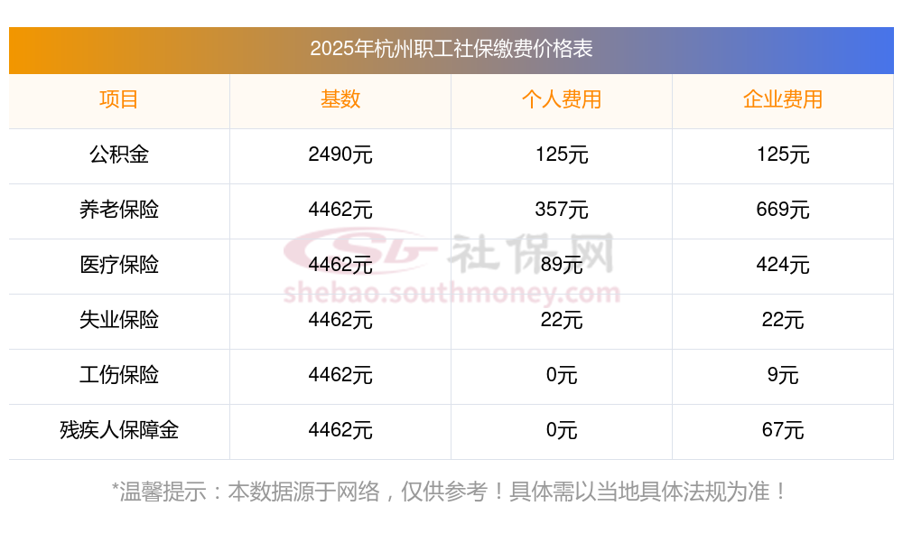 2025年杭州社保缴费多少钱?下表是2023-2024年杭州社保费用明细参考,新社通app-社保缴费查询工具提供的最新数据如下: