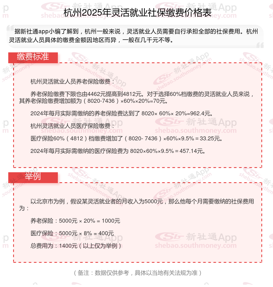 据新社通app数据显示,2024-2025年杭州灵活就业人员养老保险的缴费标准是根据缴费基数来确定的: