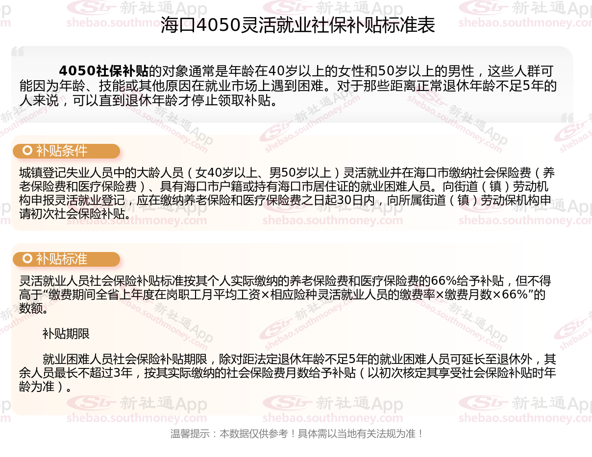 二、海口4050社保补贴标准及条件4050社保补贴,最新如下