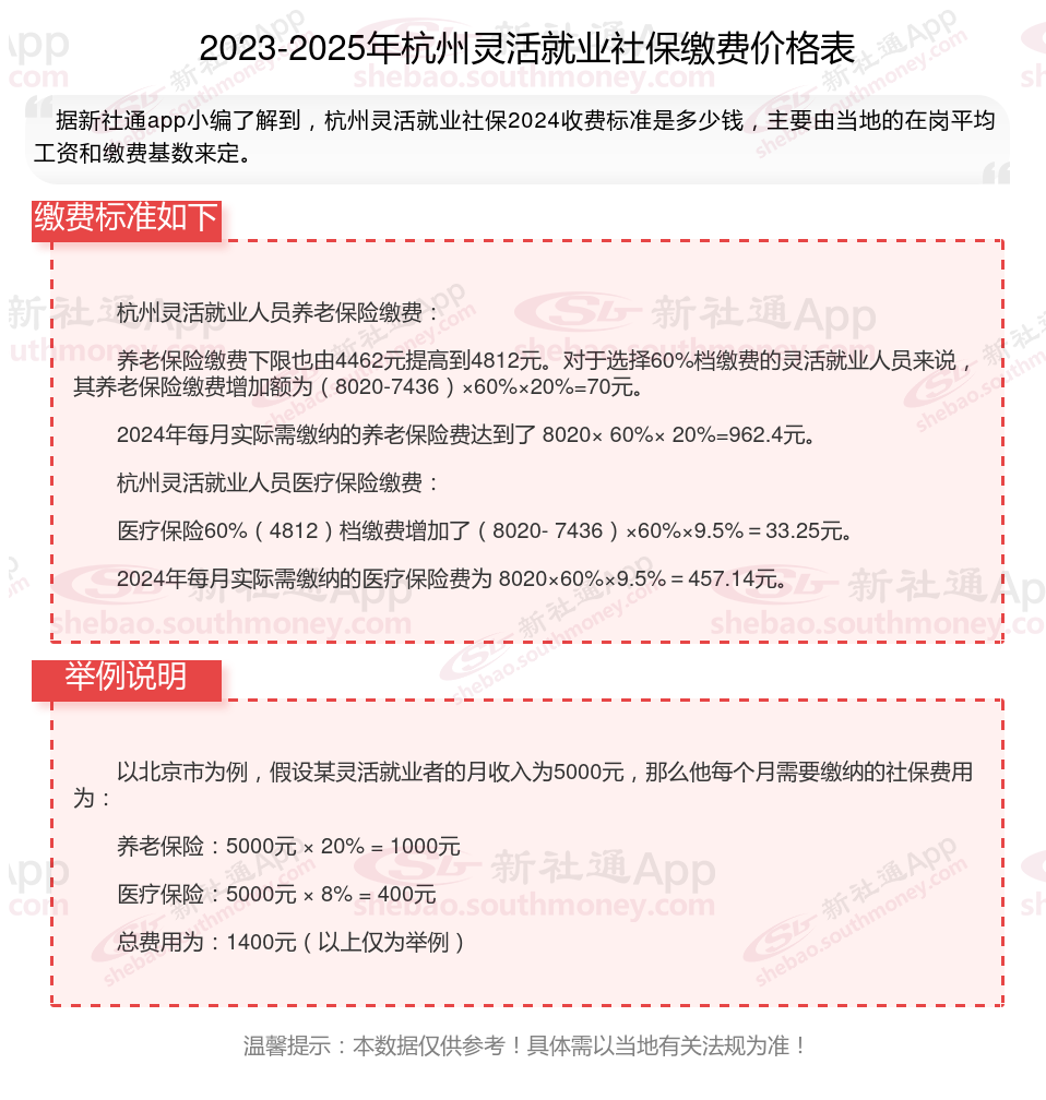 据新社通app数据显示,杭州灵活就业养老缴费基数明细如下: