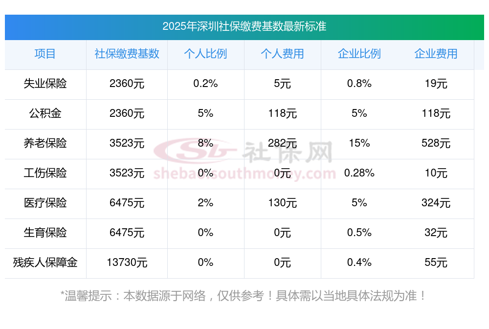 2025年深圳社保缴费价格,2025年深圳社保缴费多少钱?下表是2025年深圳社保费用明细参考,新社通app-社保缴费查询工具提供的最新数据如下: