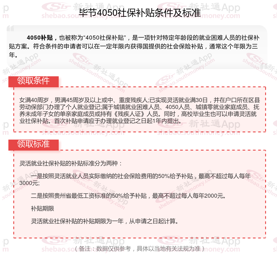 二、毕节4050社保补贴标准及条件2025年最新消息