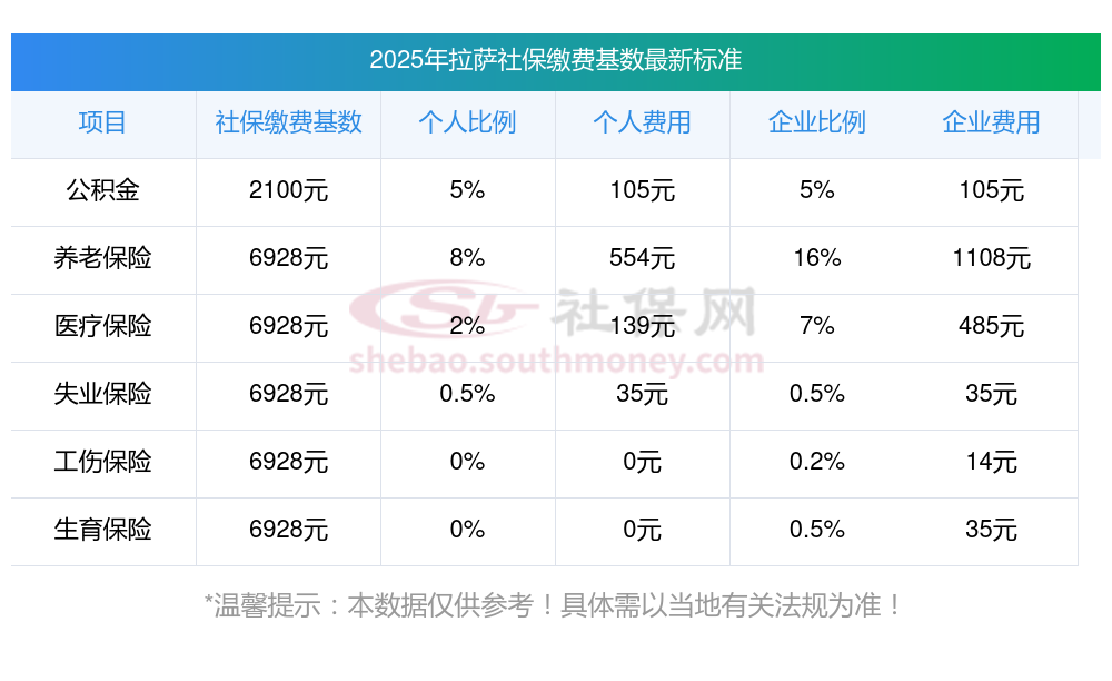 拉萨社保一个月交多少钱,个人可以缴纳社保吗??下面和社保丫丫一起来看看拉萨最低标准社保费用明细参考,新社通app-社保缴费查询工具提供的最新数据如下: