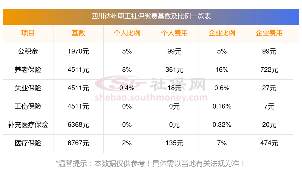 2025年四川达州社保缴纳比例,2025年四川达州社保缴费多少钱?下表是2024-2025年四川达州社保费用明细参考,新社通app-社保缴费查询工具提供的最新数据如下: