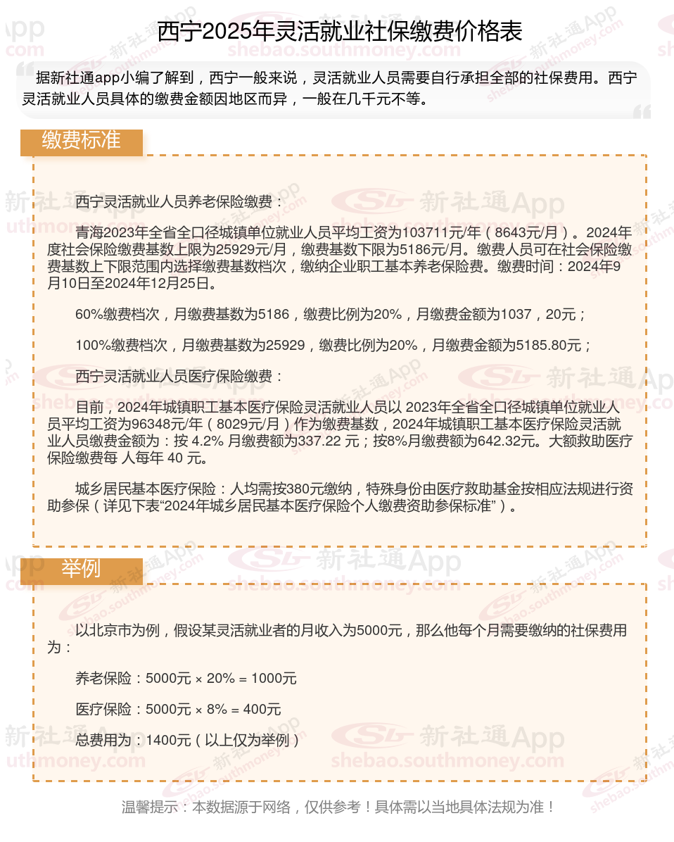 据新社通app数据显示,西宁灵活就业养老保险缴费基数2024-2025年最新标准如下: