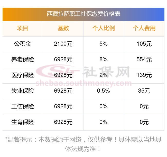 西藏拉萨社保费用个人和公司的承担比例如下: