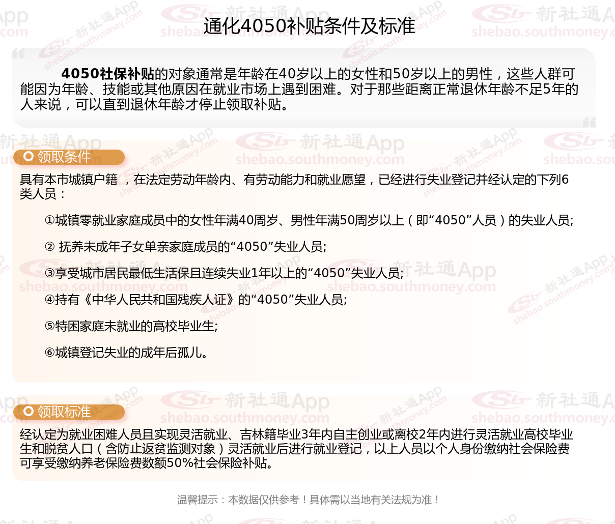 二、通化4050社保补贴标准及条件4050社保补贴,最新如下