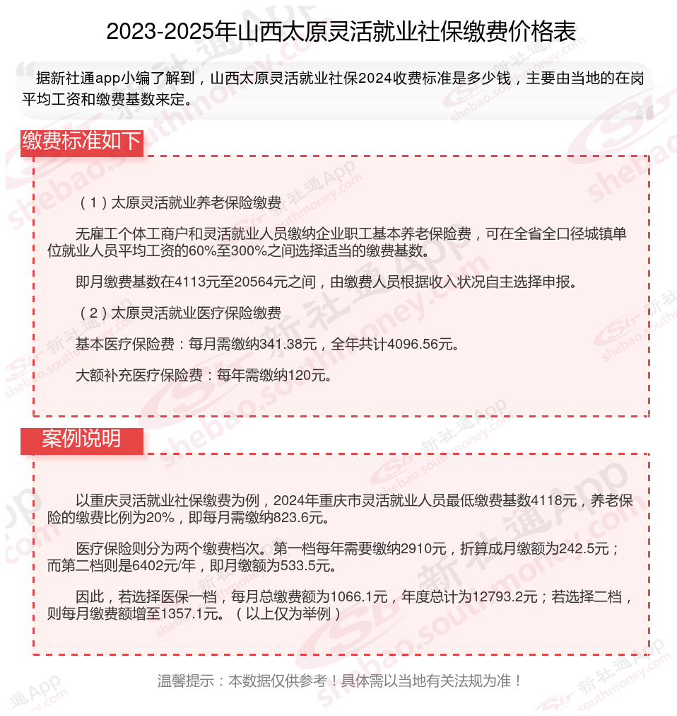 山西太原灵活就业人员基本养老保险缴费基数暂按不低于4113元;