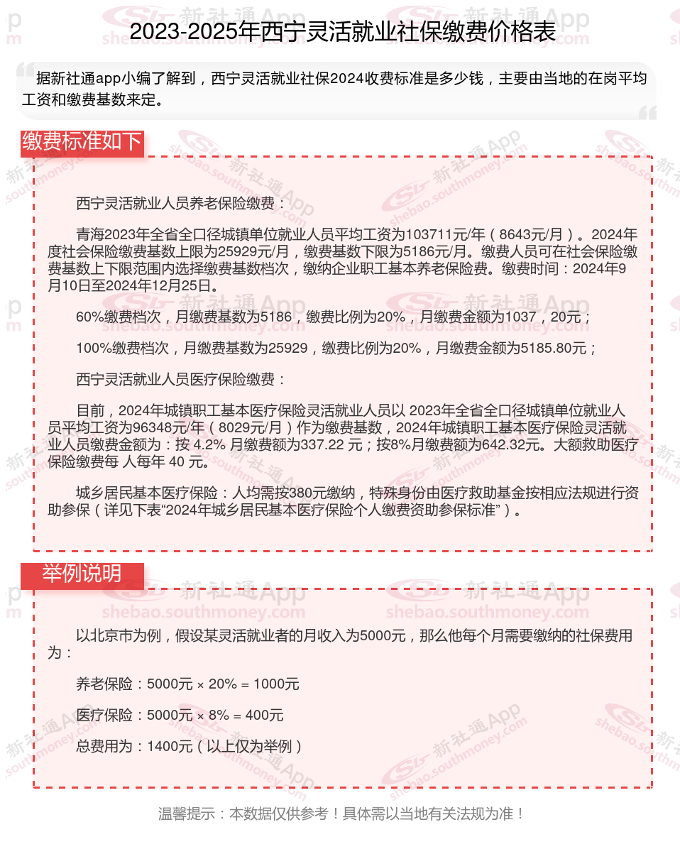 据新社通app数据显示,西宁灵活就业养老保险缴费基数2024-2025年最新标准如下: