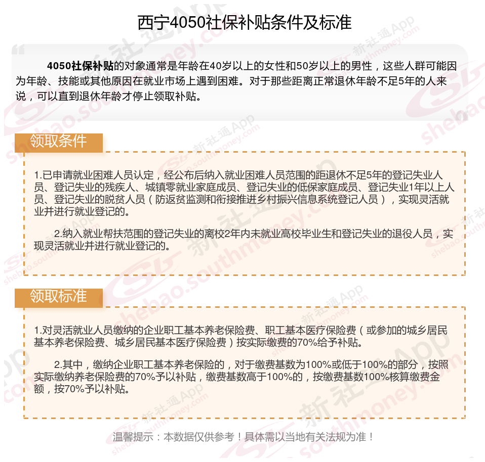 一、西宁4050社保补贴标准及条件是多少?