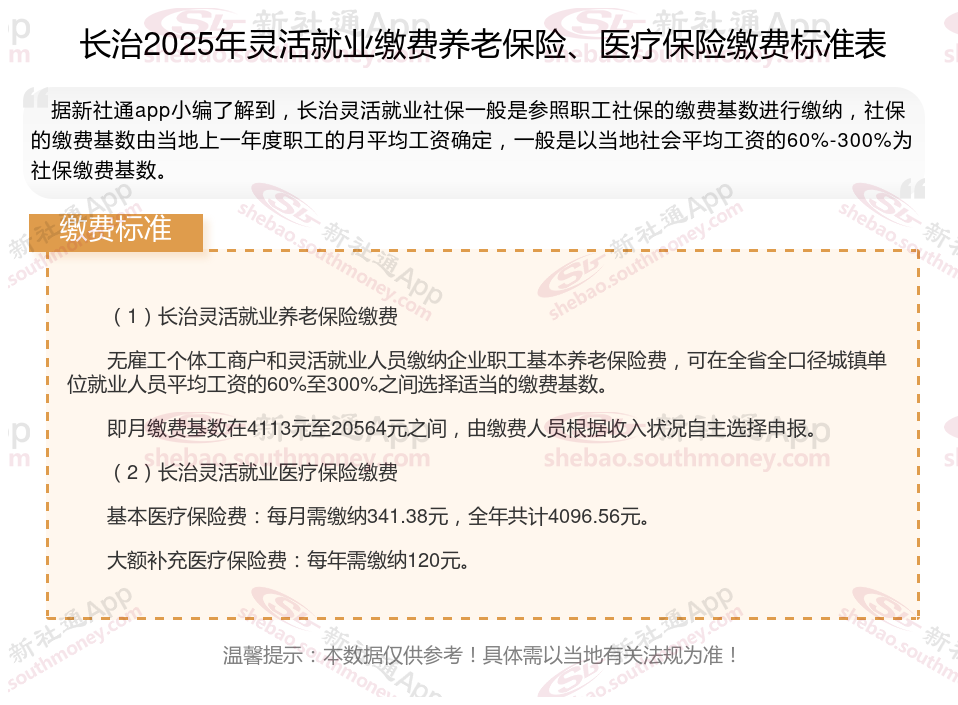 2025长治灵活就业社保缴费价格是多少钱一个月?根据新社通app-社保缴费查询工具提供的最新数据如下: