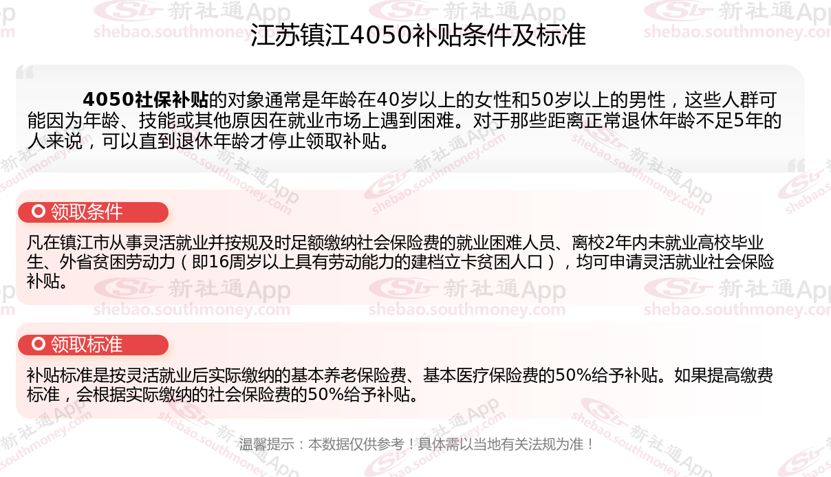 一、江苏镇江4050社保补贴标准及条件2025年最新消息