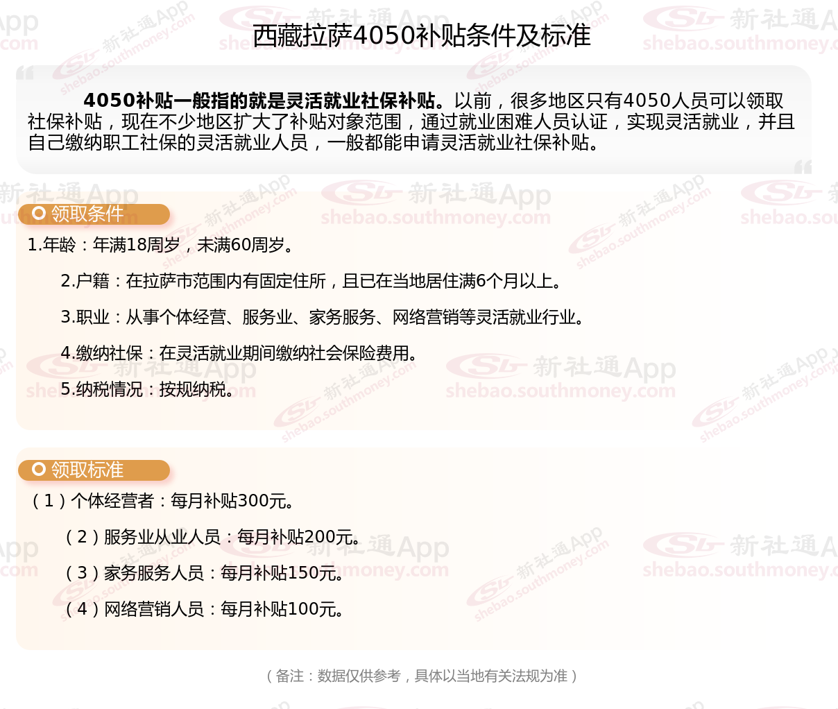 二、2025年西藏拉萨灵活就业4050社保补贴标准及条件是什么