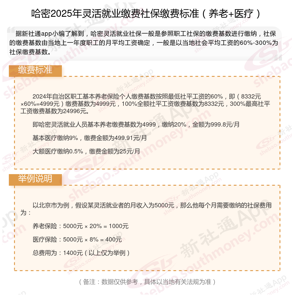2025年哈密灵活就业缴费标准个人交多少呢, 个人是可以自己交社保的吗?根据新社通app-社保缴费查询工具提供的最新数据如下: