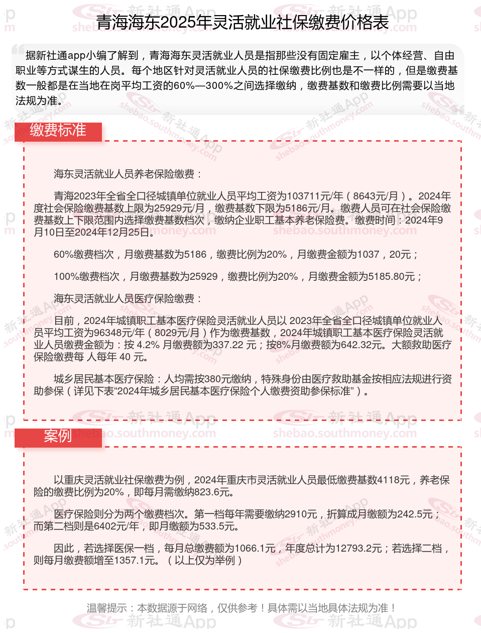 灵活就业社保是指针对灵活就业人员的社会保险制。灵活就业人员包括个体经营者、自由职业者、临时工等,他们没有固定的雇主,因此需要自行缴纳社会保险。那么2025年青海海东灵活就业人员社保需要交多少钱?下面随新社通小编一起来看看。