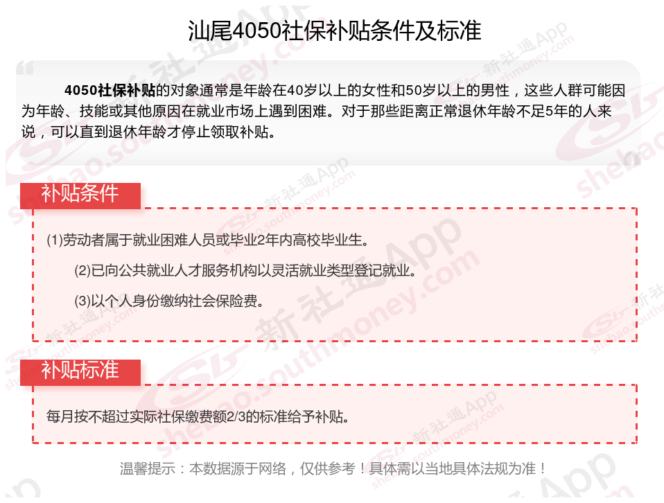 以上就是汕尾4050灵活就业社保补贴的相关内容,欢迎关注新社通/下载新社通APP了解更多五险一金专业资讯。