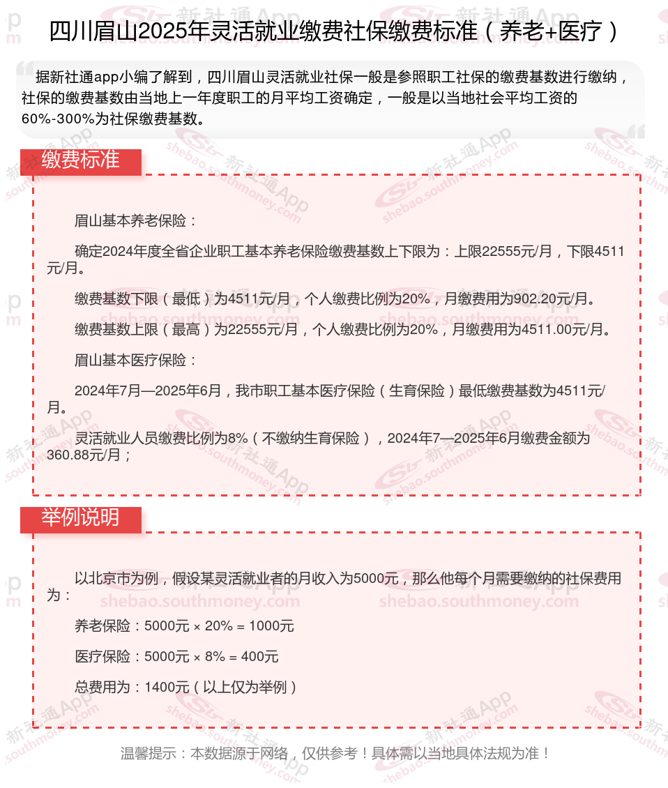一、2025年四川眉山灵活就业社保缴费标准公布啦 四川眉山灵活就业社保多少钱一个月?