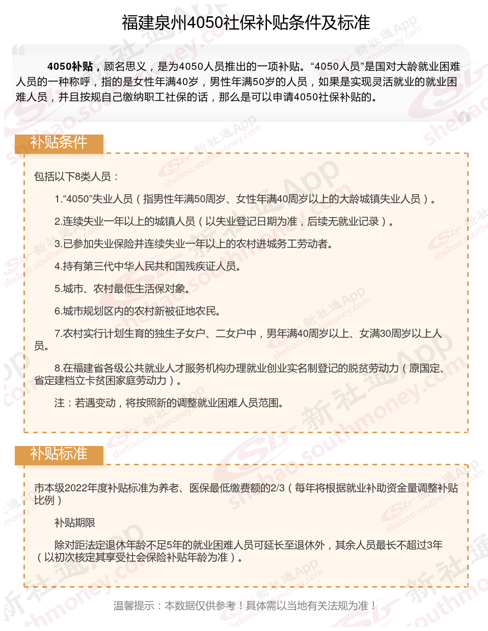 二、2025年福建泉州4050社保补贴标准是多少,最新4050社保补贴领取条件来了